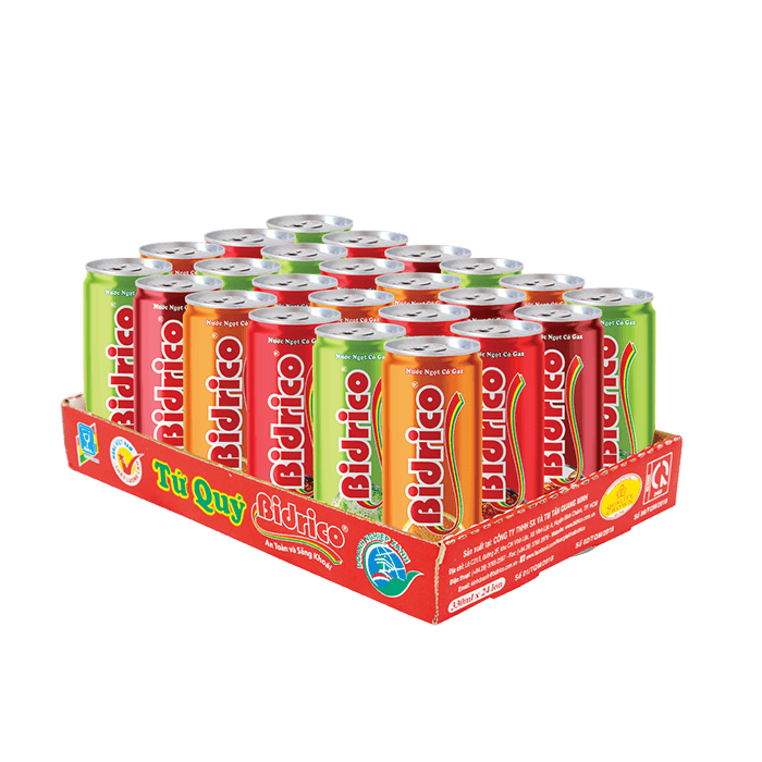 Liên hệNước ngọt có gaz hương xá xị Bidrico lon 330ml được sản xuất theo công nghệ hiện đại, khép kín từ khâu lựa chọn nguyên liệu, chế biến và đóng gói theo tiêu chuẩn. Mỗi công đoạn đều trải qua quy trình kiểm tra nghiêm ngặt và giám sát kỹ càng để cho ra đời dòng sản phẩm an toàn, chất lượng với vị ngọt dịu giúp giải khát nhanh chóng. Chính vì nước ngọt có gaz hương xá xị tạo cảm giác tươi mát và sảng khoái cực ĐÃ, nên đây là sản phẩm được mọi lứa tuổi ưa chuộng và tin dùng mỗi ngày. Các hương vị nước ngọt có gaz Bidrico lon 330ml: Cam, soda kem, cola, xá xị.