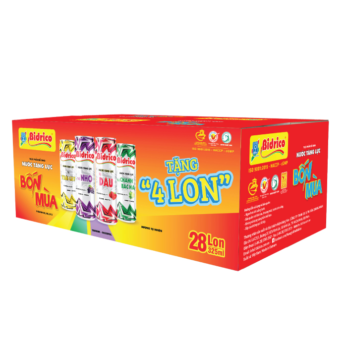 Không chỉ đặc biệt ở hương vị, Nước tăng lực Bidrico còn gây ấn tượng bởi thiết kế đóng gói hoàn toàn mới với sự kết hợp của 4 hương vị trong 1 thùng gồm: Dâu, Chanh bạc hà, Trái cây và Nho. Đó là biểu tượng cho 4 mùa, 4 nguồn năng lượng để bạn có thể “chọn năng lượng phù hợp cho từng ngày, từng khoảnh khắc.”