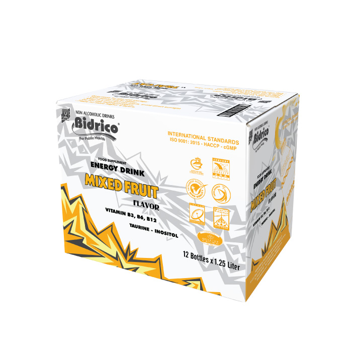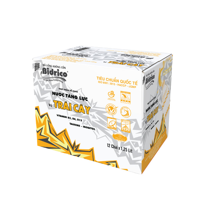 Các hương vị nước tăng lực Bidrico chai 1.25l: Nho, Dâu, Trái Cây