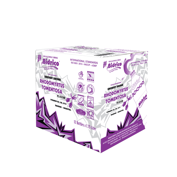 Các hương vị nước tăng lực Bidrico chai 1.75l: Cherry, Chanh bạc hà, Trái cây, Sim rừng, Nho, Dâu.