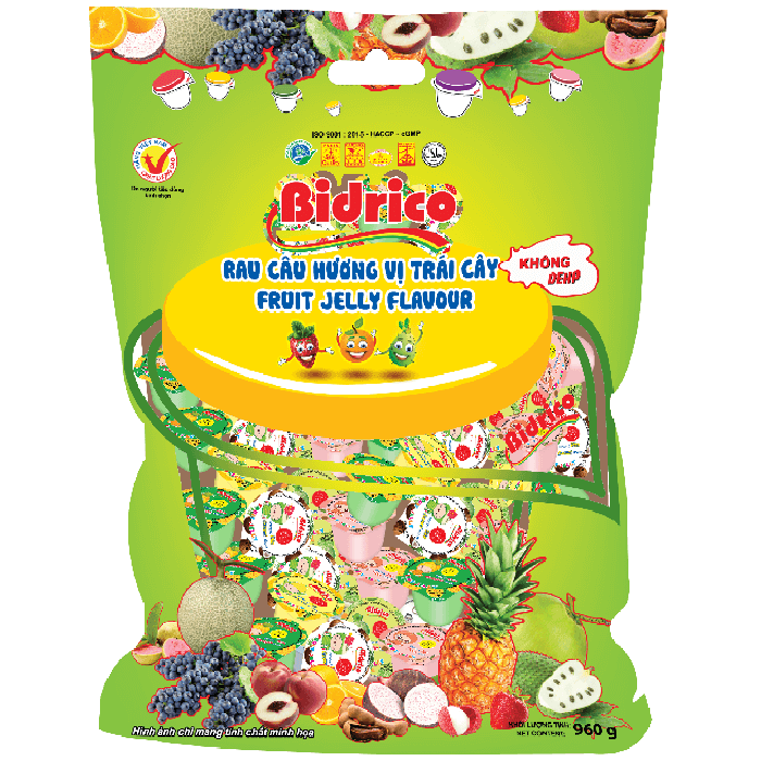 Liên hệRau câu hương vị trái cây Bidrico là sự kết hợp từ bột rau câu, thạch dừa dai dai, giòn giòn và vị chua chua ngọt ngọt từ các loại trái cây: Bắp, chuối, ổi, khóm, xoài, mãng cầu, dừa, cam, dưa… Sự hoà quyện này mang lại một trải nghiệm thú vị và ngon miệng, phù hợp với từng khẩu vị của mọi thành viên trong gia đình.